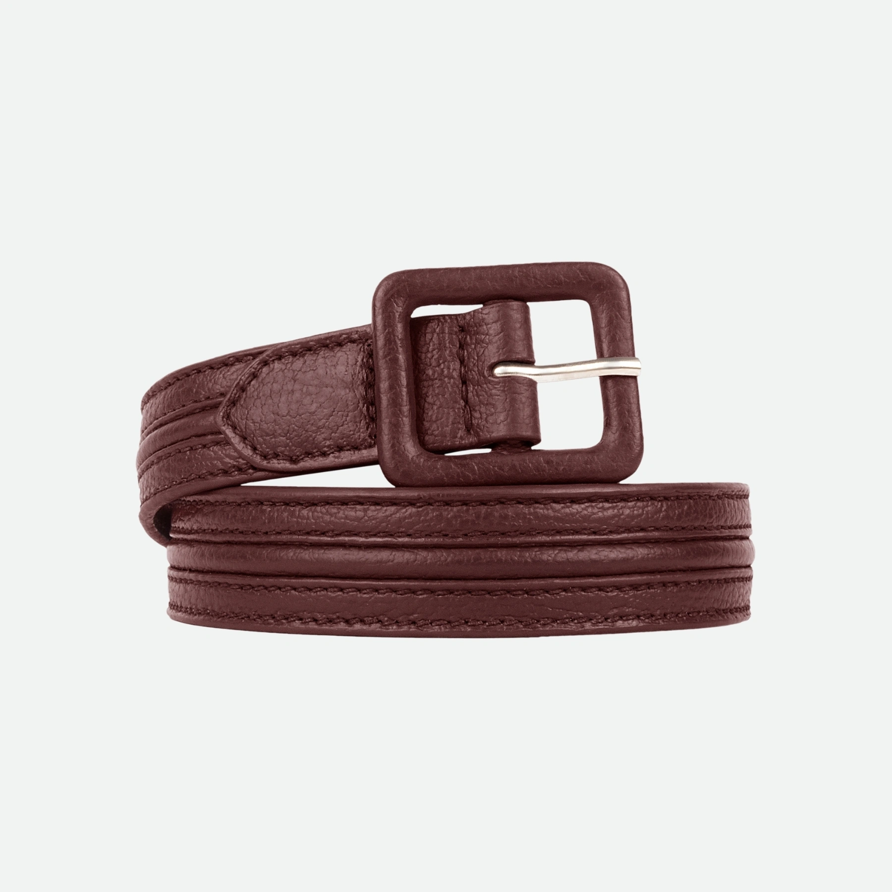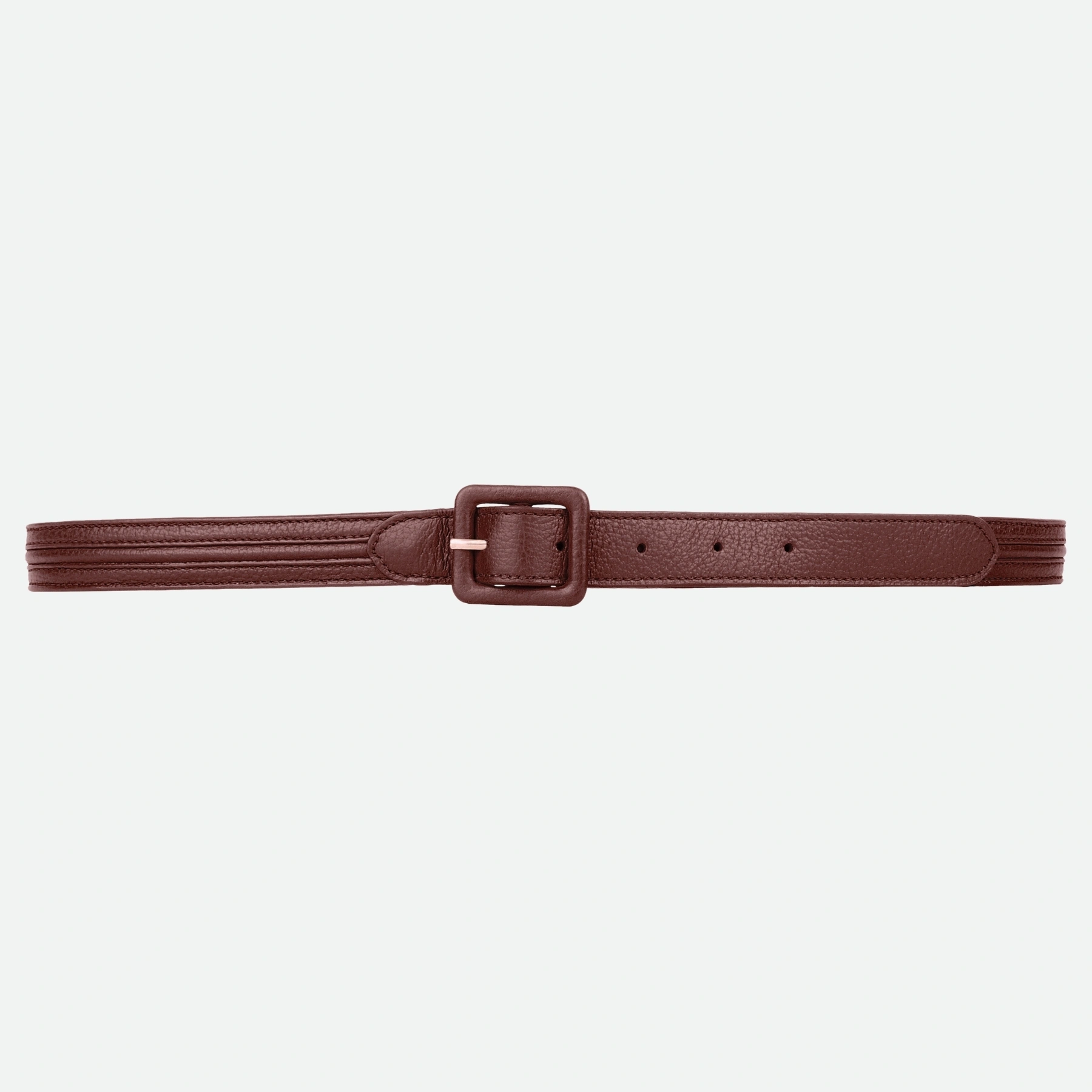 This genuine Italian leather belt with pipe detailing and a contemporary square buckle is an excellent choice for a polished finish with business-casual attire, such as trousers or blazers, or for elevating smart-casual outfits like skirts and dresses.